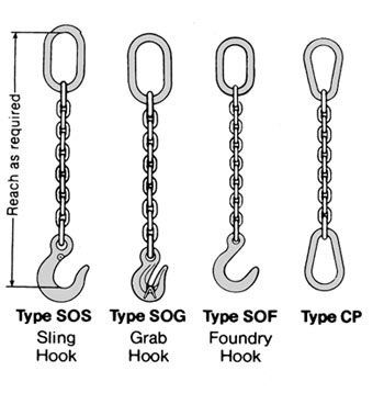 - Eslingas de brazos con accesorios: estándares en configuración de un brazo o dos, con diferentes accesorios disponibles, también disponibles en tres y cuatro brazos.