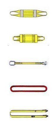 - Eslingas circulares sin fin (Roundslings): fabricadas por la acción de hacer curvas hasta formar una gasa en fibra 100% de poliéster, y recubierta con un forro. Puede ser usada con cualquier tipo de ganchos, proporcionando una gran flexibilidad.
